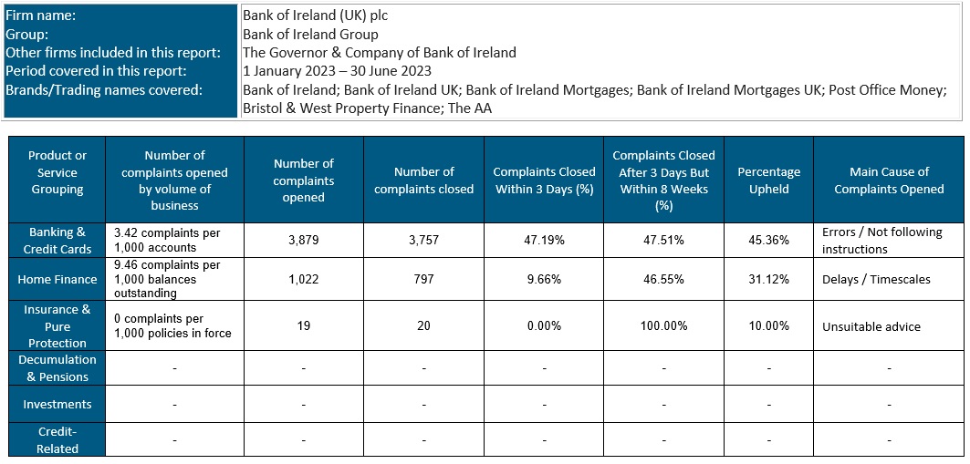 - On average, Bank of Ireland (UK) plc upholds 40.72% of all complaints we receive;