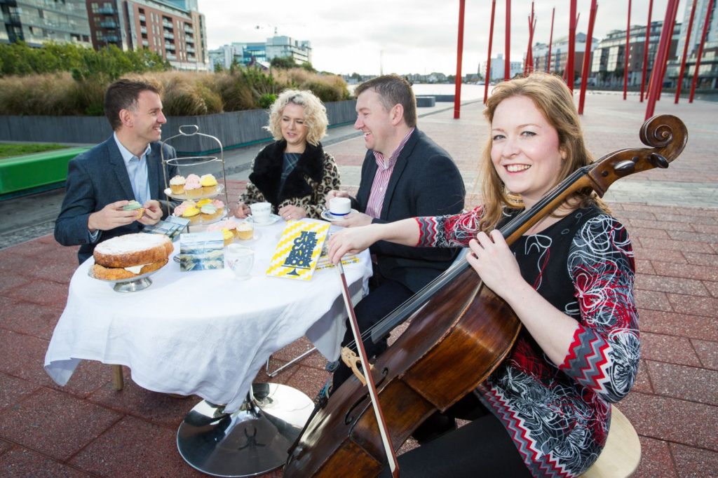 Pictured are Andrew Hetherington, Chief Executive, Business to Arts, Michelle Darmody of Cake Café who crowdfunded her Café Cake Bake Book, Dave Tighe, Head of Innovation, Bank of Ireland and Alibhe McDonagh, Cellist with Trio Elatha, who crowdfunded their debut album on Fundit.ie.